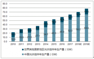 2010年至2019年中國及世界光伏組件年生產(chǎn)量的統(tǒng)計及預(yù)測