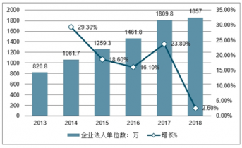 2013-2018年中國企業(yè)法人單位數(shù)