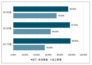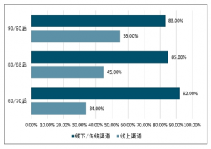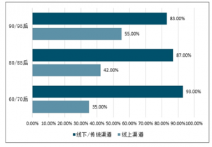 在白酒營銷渠道方面,不同年齡層次適用的營銷渠道占比不同,60/70后更偏向于線下渠道,而90后偏向于線上渠道,同時線上渠道的影響力正不斷擴(kuò)大,已經(jīng)成為觸達(dá)年輕市場不可忽視的重要性媒介。