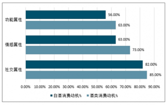 對比整個酒類的飲用動機(jī),白酒并不能較好滿足喝酒人群在娛樂性方面的訴求,迎合社交需求的情況偏多。