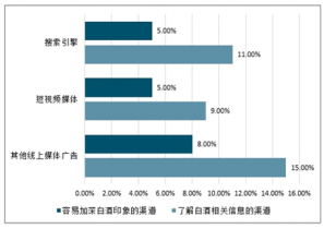 線上線下渠道了解白酒行業(yè)相關(guān)信息占比情況(單位:%)