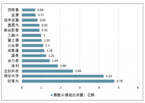 2018年國內(nèi)前15強(qiáng)攝像頭模組出貨量(單位:億顆)
