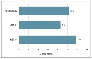 2019年,因建材行業(yè)回暖,主要建材產品生產總體保持平穩(wěn)。其中,陶質磚、瓷質磚、衛(wèi)生陶瓷制品產量同比分別增長11.8%、8.6%、10.3%。