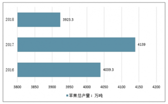 2018年受清明期間大范圍凍害影響,中國鮮蘋果減產(chǎn),全年蘋果總產(chǎn)量為3923.3萬噸。
