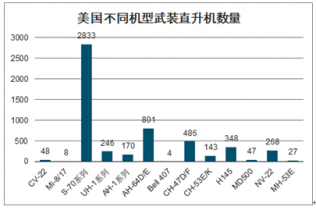 將中美兩國武裝直升機按照不同型號進行分別比較,當前我國共有輕型直升機直-9、直-19系列以及部分進口型號AS365/565系列武裝直升機共322架,約為我國直升機總數(shù)的三分之一;中型直升機直-10系列以及進口的S-70等型號共計147架;而13噸級以上的大型、重型直升機,我國主要以直-8系列以及進口俄羅斯的Mi-8/17/171系列直升機共387架。美國當前擁有最多的型號為10噸級S-70黑鷹系列直升機2833架,占美國所有直升機的半數(shù)以上,另外,10噸級的AH-64D/E阿帕奇武裝直升機有801架,重型直升機(大于13噸)如CH-47、CV-22以及CH-53系列等共計972架。對比發(fā)現(xiàn),我國在10噸級通用直升機、重型直升機以及中型武裝直升機方面與美國相比存在較大差距,未來的需求很大。