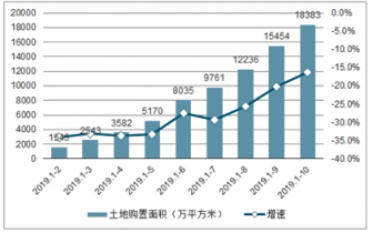 2019年1-10月房地產(chǎn)開發(fā)企業(yè)土地購置面積及增速