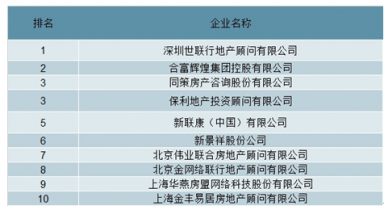 2018年房地產(chǎn)代理企業(yè)排名TOP10