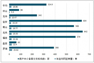 2018年深圳房產(chǎn)中介備案分支機構(gòu)數(shù)及年店均網(wǎng)簽單量區(qū)域分布(單位:家,單)