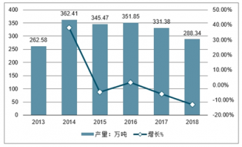 2013-2018年中國(guó)糖果產(chǎn)量及同比增長(zhǎng)