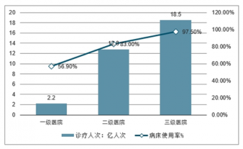 中國各級醫(yī)院診療人次及病床使用率情況