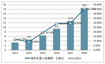 2013-2018年中國(guó)服務(wù)機(jī)器人市場(chǎng)規(guī)模及增長(zhǎng)走勢(shì)