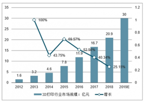 圖表:2015-2019年中國(guó)3D打印行業(yè)市場(chǎng)規(guī)模