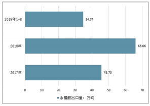 2017-2019年8月冰醋酸出口量(單位:萬噸)