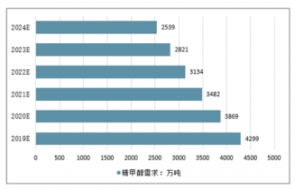 2019-2024年精甲醇市場(chǎng)需求預(yù)測(cè)(單位:萬(wàn)噸)