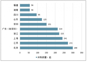 2018年中國并購市場前十地區(qū)(按并購數(shù)量)