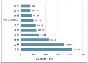 2018年中國并購市場前十地區(qū)(按并購金額)(單位:億元)
