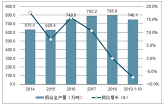 2019年1-10月中國(guó)鋁合金產(chǎn)量及增速統(tǒng)計(jì)表