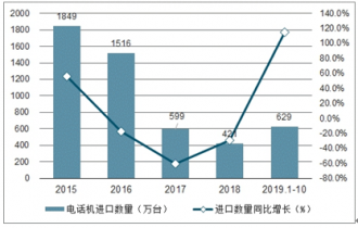 2015-2019年1-10月中國電話機進口數(shù)量及增速趨勢圖