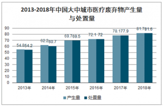 2013-2018年中國(guó)大中城市醫(yī)療廢棄物產(chǎn)生量與處置量