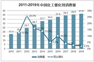 我國化工催化劑消費(fèi)量與我國化工產(chǎn)品產(chǎn)量由直接關(guān)系,2018年我國化工催化劑消費(fèi)量約為40.6萬噸,同比增長2.8%。初步估計(jì)2019年我國化工催化劑的消費(fèi)量將達(dá)到41萬噸以上。