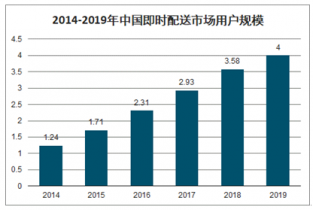 2015-2019年我國即時配送行業(yè)用戶規(guī)模逐年增長,其中,2018年行業(yè)用戶規(guī)模達(dá)到3.58億人,較2017年增長0.65億人。根據(jù)近幾年的用戶規(guī)模增速,2019中國即時配送市場用戶規(guī)模將達(dá)4億人。