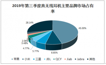 2019年第三季度真無線耳機(jī)主要品牌市場占有率