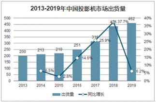 2013-2019年中國投影機(jī)市場出貨量