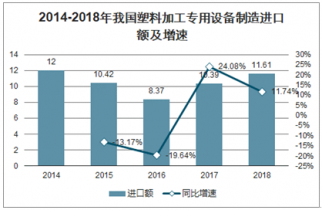 2014-2018年我國(guó)塑料加工專(zhuān)用設(shè)備制造進(jìn)口額及增速