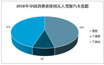 2018年,46%的中國(guó)人受訪者最有可能使用自動(dòng)駕駛汽車;9%的中國(guó)消費(fèi)者不愿意使用無(wú)人駕駛汽車;45%的消費(fèi)者持觀望不確定的態(tài)度,但對(duì)自動(dòng)駕駛汽車的想法很感興趣。