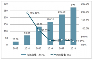 2013-2018年中國(guó)云印刷市場(chǎng)規(guī)模及增長(zhǎng)情況(單位:億元,%)