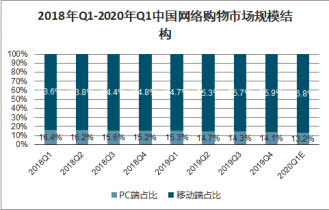 2018年Q1-2020年Q1中國網(wǎng)絡(luò)購物市場規(guī)模結(jié)構(gòu)