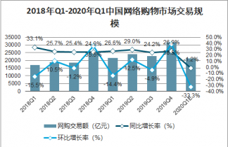 2018年Q1-2020年Q1中國網(wǎng)絡(luò)購物市場交易規(guī)模