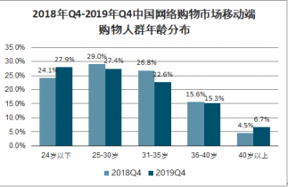2018年Q4-2019年Q4中國網(wǎng)絡(luò)購物市場移動端購物人群年齡分布