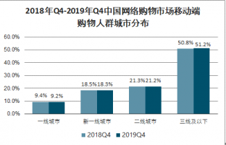 2018年Q4-2019年Q4中國網(wǎng)絡(luò)購物市場移動端購物人群城市分布