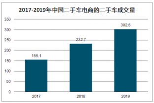 2018年,我國二手車電商的二手車成交量進(jìn)一步提高, 2018年,成交量達(dá)232.7萬輛,較2017年增長50.1%。2019年,我國二手車電商的二手車成交量約為302.6萬輛左右。