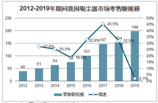 2012-2019年期間我國吸塵器市場(chǎng)零售額規(guī)模