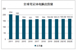 全球筆記本電腦出貨量2011年達(dá)到頂峰為2.04億臺,受智能手機和平板電腦等可替代消費電子的快速普及的沖擊,筆記本電腦所承載的娛樂休閑功能被智能手機、平板電腦所分流,2012年至2016年筆記本電腦出貨量整體下滑,下滑趨勢較為明顯。2018年出貨量為1.64億臺,2022年預(yù)計出貨量1.66億臺,年復(fù)合增長率為0.4%。