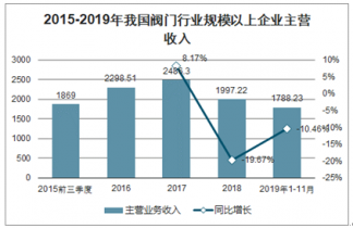 2015-2019年我國閥門行業(yè)規(guī)模以上企業(yè)主營收入