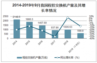 2014-2019年9月我國程控交換機產量及其增長率情況