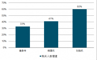 2018年中國不同類型大型健身器械購買人數(shù)增速