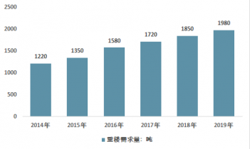 最早的重樓需求主要依靠采集野生資源滿足,但隨著市場需求量增加,野生資源管理不當(dāng),重樓的種植已經(jīng)成為重樓重要的供給來源。2014年我國重樓需求量1220噸,到2019年增長到了1980噸。近幾年我國重樓需求情況如下圖所示: