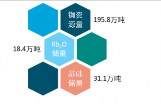 目前我國Rb2O儲量約為18. 4萬t,基礎儲量約31.1萬t,查明資源量約195.8萬t,其中硬巖型Rb2O約190. 4萬t,占全國Rb2O資源量的97%。鹵水型Rb2O約5.4萬t,占全國資源量的3%。