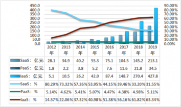 2012-2019年我國(guó)公有云不同服務(wù)模式市場(chǎng)規(guī)模及份額統(tǒng)計(jì)圖