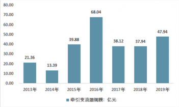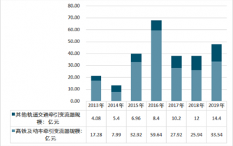 近幾年,我國軌道交通牽引變流器市場規(guī)模整體呈現(xiàn)增長態(tài)勢,2013年國內(nèi)軌道交通牽引變流器市場規(guī)模約21.36億元,到2019年增長到了47.94億元。