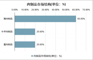 我國肉制品類食品消費(fèi)結(jié)構(gòu)來看,國內(nèi)豬肉制品所占的市場份額最大,占比超60%;其次是禽肉制品,占比約20%。