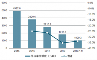 2015-2019年前9月中國(guó)外廢審批額度及增速趨勢(shì)