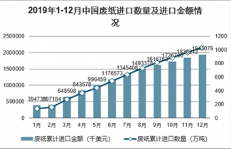 2019年1-12月中國廢紙進口數量及進口金額情況