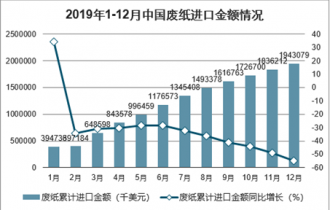 2019年1-12月中國廢紙進口金額情況
