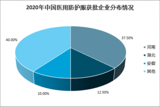 從防護服企業地區分布情況來看,河南省為我國防護服生產制造最大的省份,企業數量約占全國的37.5%;湖北省約占12.5%,安徽省約占10.0%。