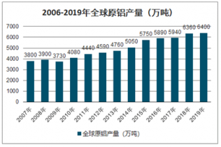 2006-2019年全球原鋁產(chǎn)量(萬(wàn)噸)